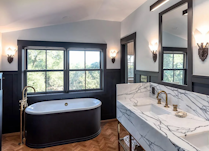 | MATERIALS | Valor Portrait fireplaces, Davinci Roofing, Toto & Duravit plumbing, Cowan & Tout wall coverings, Juno recessed lighting, Hubbardton Forge pendants, Shaper & BK Lighting exterior lighting, Truitt & White mouldings |